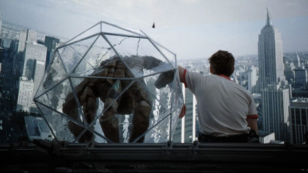 A grande virada emocional acontece com a introdução de Rocky, um alienígena de aparência incomum, quase aracnídea, cuja civilização enfrenta a mesma ameaça. A relação entre Grace e Rocky é, sem dúvida, o coração do filme. O que poderia soar absurdo — uma amizade interestelar construída a partir de uma comunicação improvisada — se revela surpreendentemente envolvente. Há uma delicadeza na construção desse vínculo que confere humanidade (ou algo próximo disso) a uma história que se passa no vazio frio do espaço. É nesse ponto que o filme encontra seus momentos mais sinceros e até comoventes.